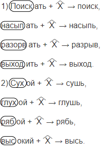 1) Поиск, насыпь, разрыв, выход. 2) Сушь, глушь, рябь, высь.